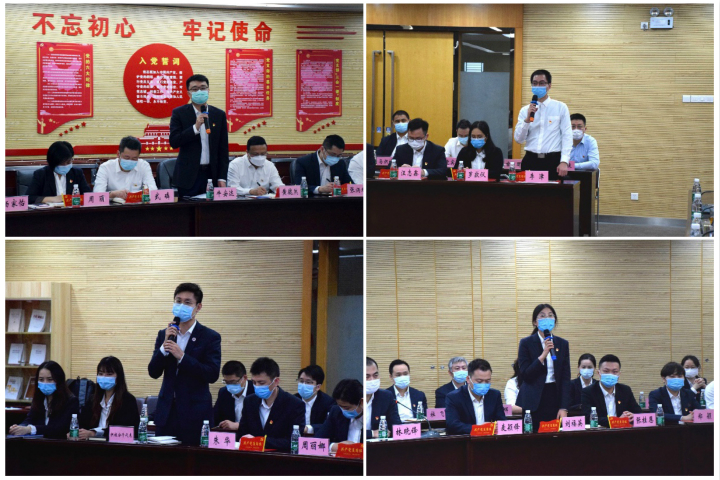 新党员代表黄定南、牛安达、刘福英、李津先后发言,汇报学习心得,抒发入党初心,并结合当前国际国内形势,讲述自己在抗疫复产中的工作和感受,纷纷表明态度,要不断加强学习、努力工作,体现共产党员先锋作用。入党积极分子代表关皓文在发言中表达了自己向党员同志学习、向党组织靠拢的信念和决心。