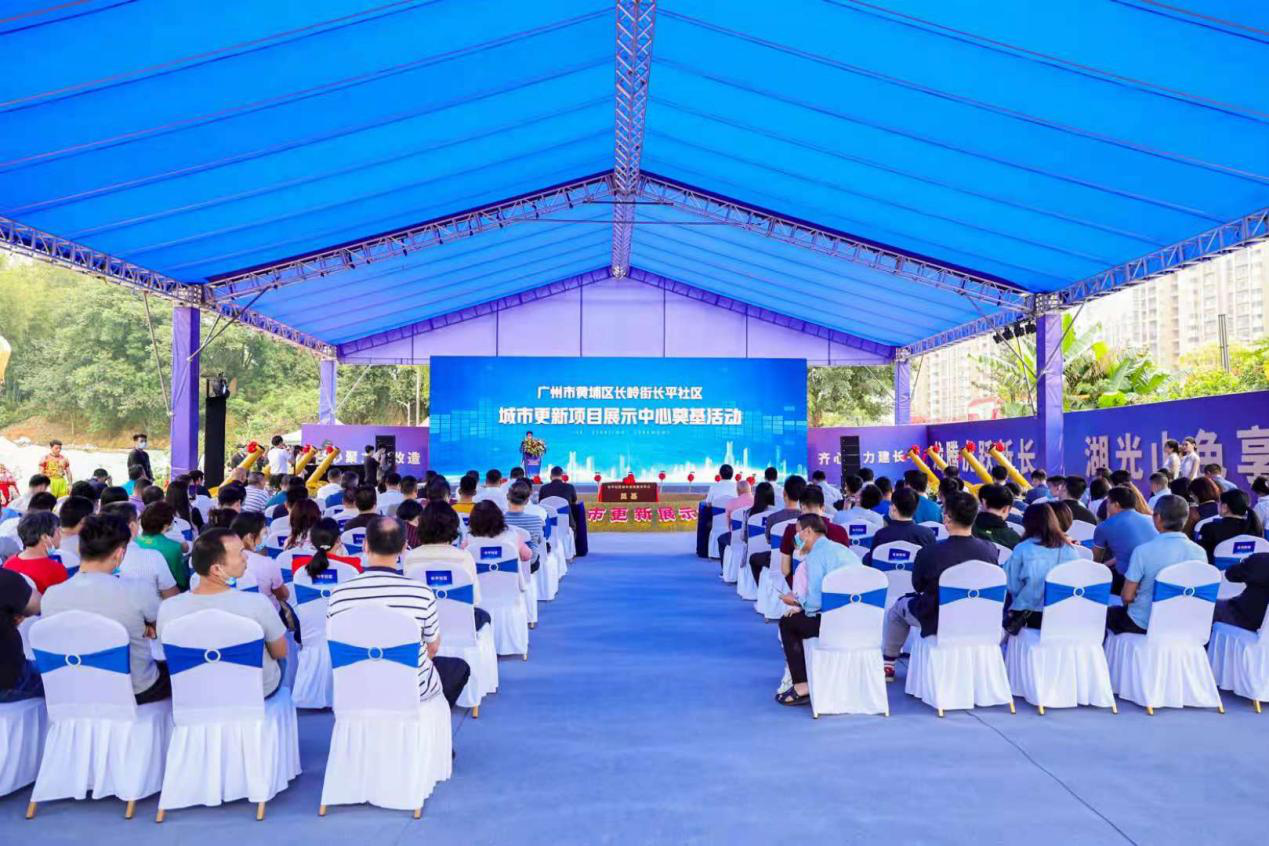 4月18日上午,广州市黄埔区长岭街长平社区长平旧村改造项目隆重举行展示中心奠基典礼。广州开发区党工委委员、管委会总规划师、长岭街道党工委书记陈智勇,区城管局局长、党组书记吴其东,区规自局副局长蔡伟斌,区更新局总经济师贺小波,长岭街道党工委副书记、办事处主任沈凯等领导出席了此次动工仪式。